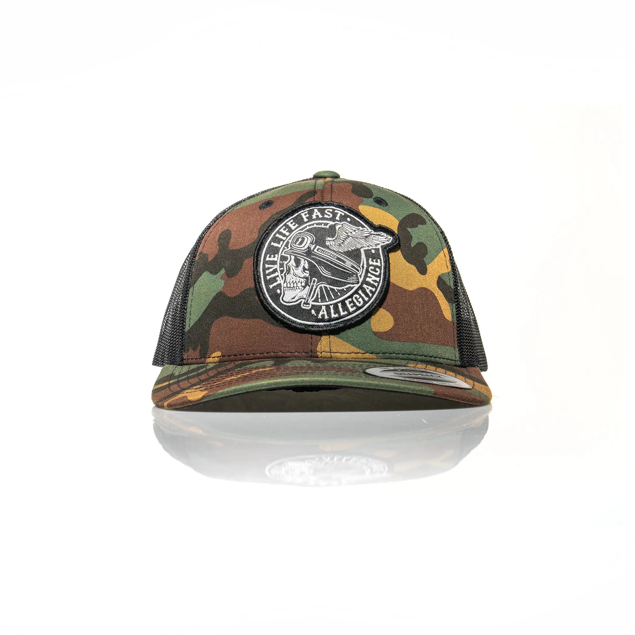 Introducing the Allegiance Winged Trucker Hat! This stylish and functional hat is perfect for anyone who loves living life to the fullest. It's made of a high-quality 65% Polyester and 35% Cotton blend, making it durable and comfortable. The breathable mesh panels offer excellent ventilation and sweat control, while the Winged patch sewn on the front provides a touch of style. It's perfect for everyday wear, whether you're hitting the track or spending a day at the range. Choose from a variety of colors to find the perfect look for you. Show your support for Allegiance with this awesome hat!